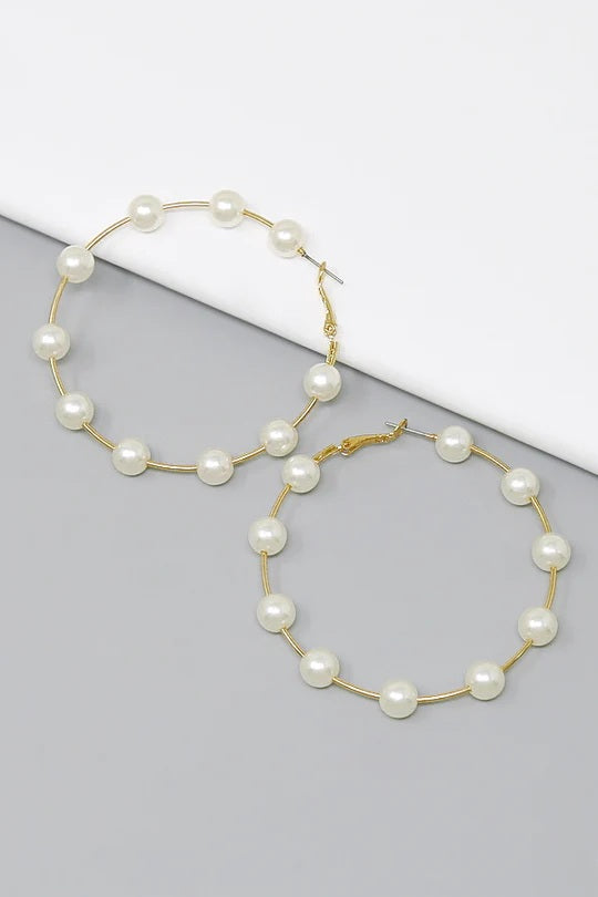 - Gold-tone classic pearl bead station hoop