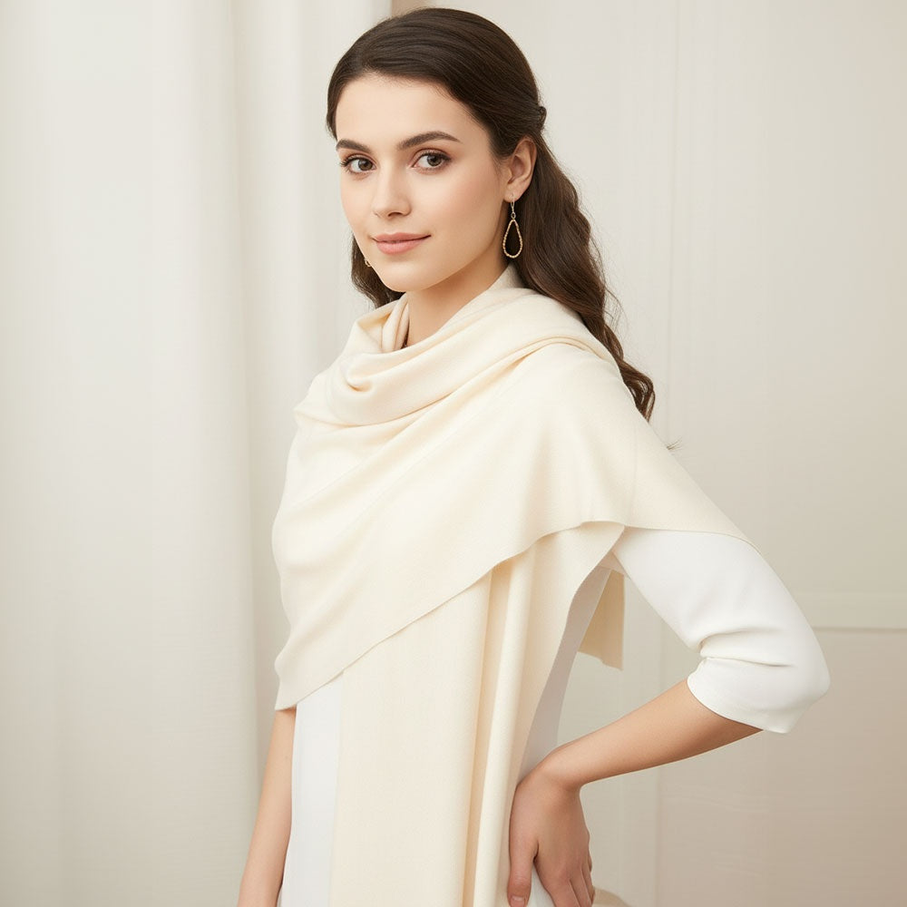 Elegant and Versatile Cream Cashmere Blend Wrap Shawl Scarf