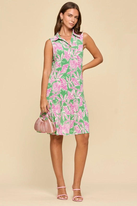 - Floral pink sleeveless collared dress