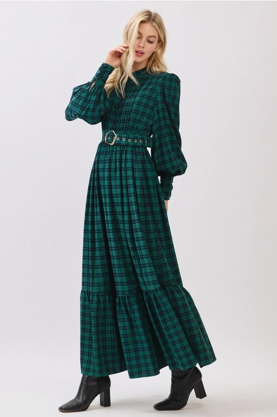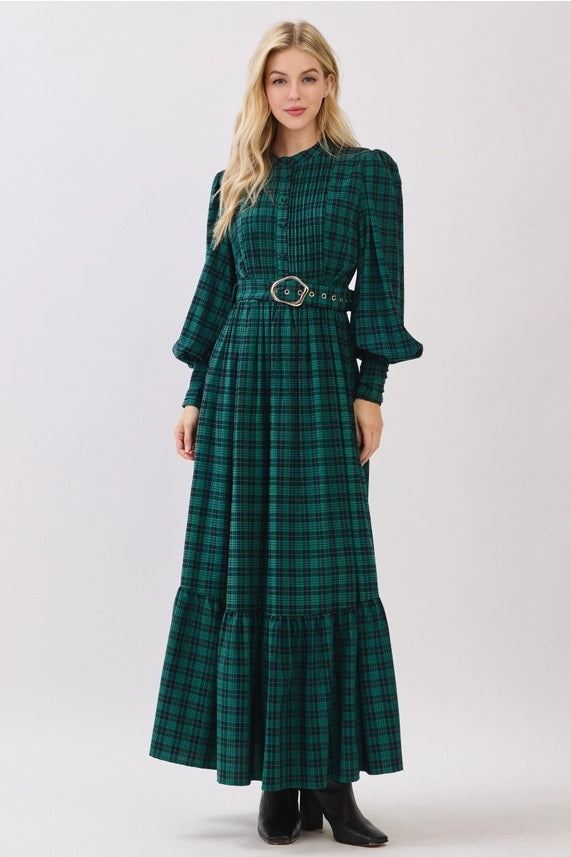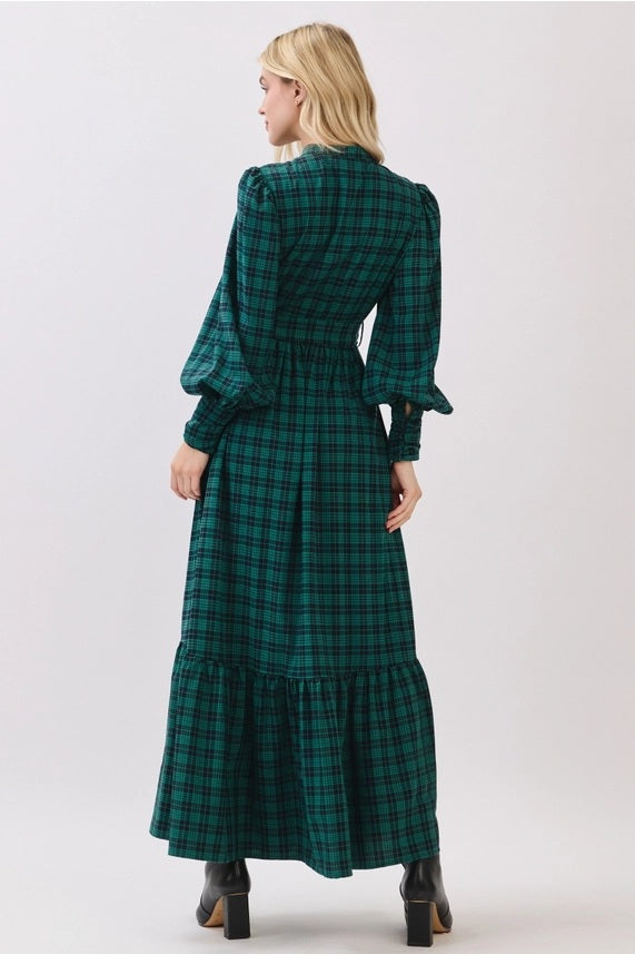 - Hunter green plaid button down maxi dress