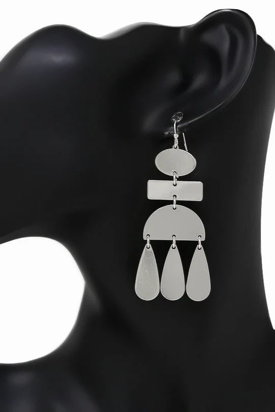 Rhodium Geometric Metal Dangle Earrings