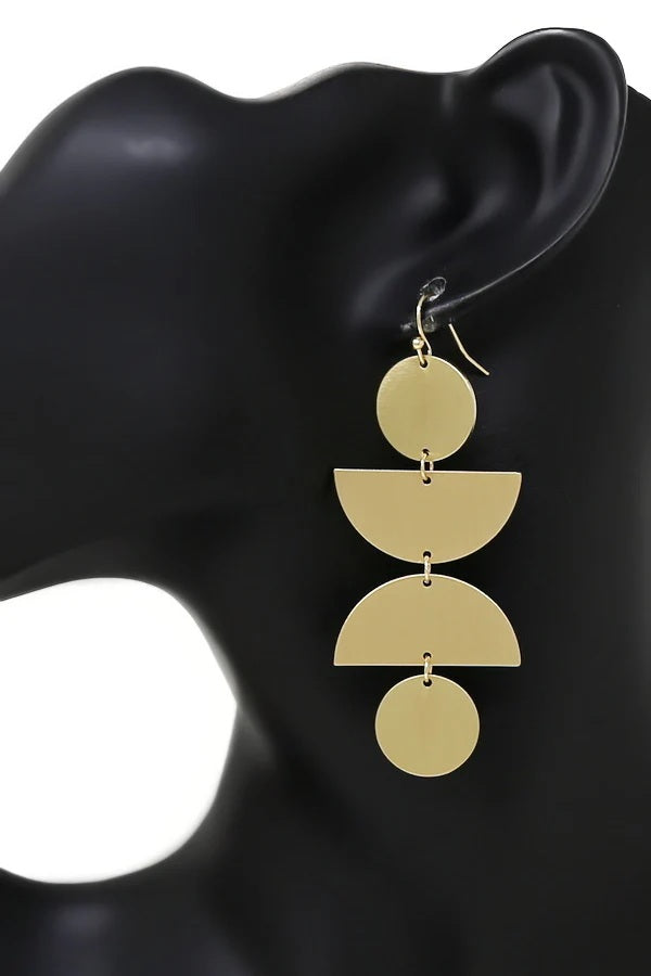 Make a bold statement with our satin gold geometric metal dangle earrings. A modern, lightweight accessory designed to elevate any look. The satin-finish gold gives a soft, luxe glow, while the geometric shapes add eye-catching movement and contemporary style. Perfect for work, nights out, or special events, these earrings instantly upgrade any outfit with minimal effort.