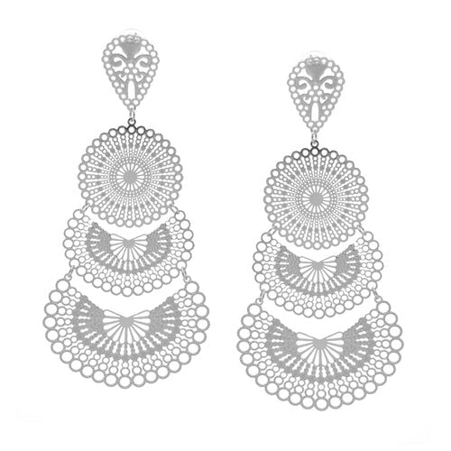 Our silver filigree lightweight earrings add a touch of effortless elegance to your accessories collection. Crafted with intricate filigree detailing, they bring a sophisticated sparkle to your look without the heavy feel. No stress on the ear lobes. At 4 inches long, these earrings are lightweight and comfortable for all-day wear, featuring a secure post back closure for easy styling. Perfect for dressing up casual outfits or completing your evening ensemble.