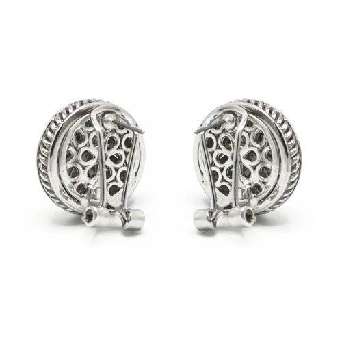 Two Tone Crystal Marcasite Round Earrings - Twisted Rope Studs Details: