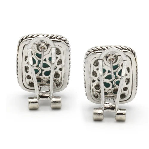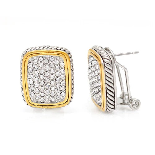Two Tone Crystal Pave Post Earrings - Elegant Omega Back